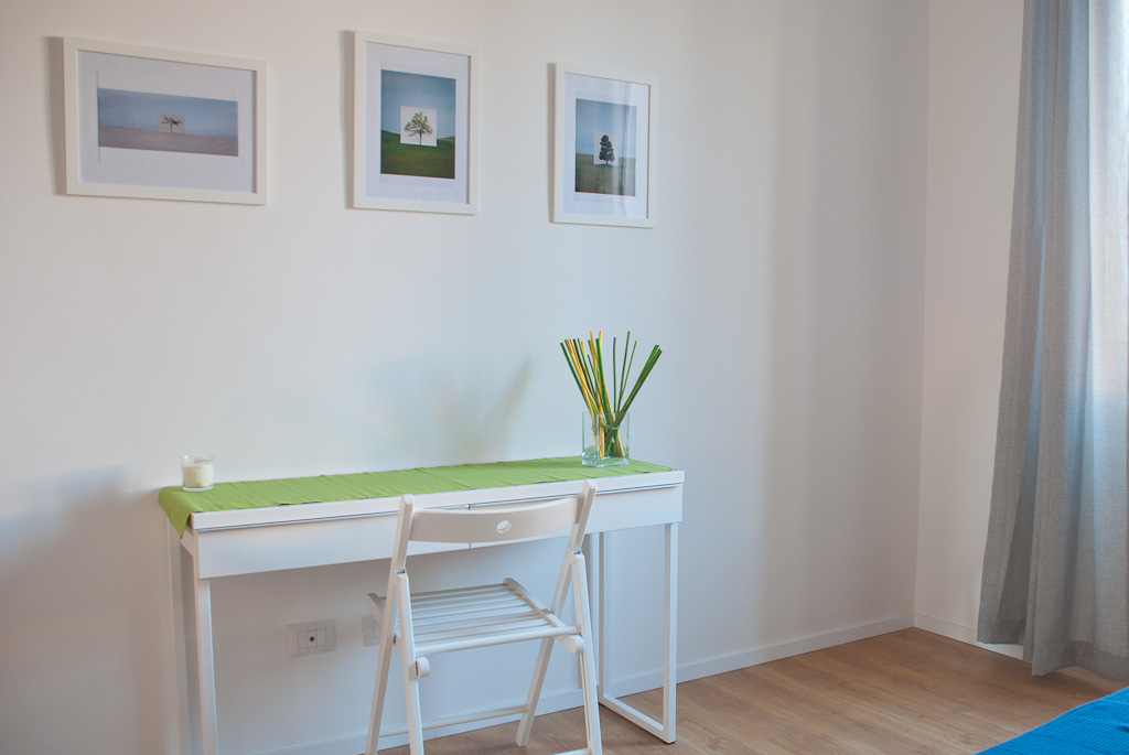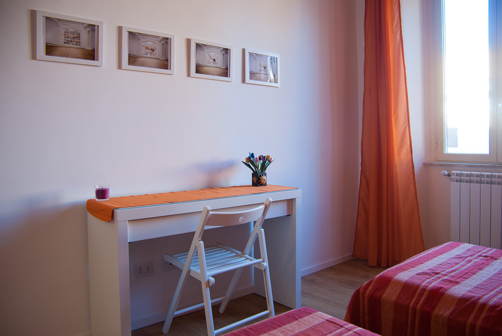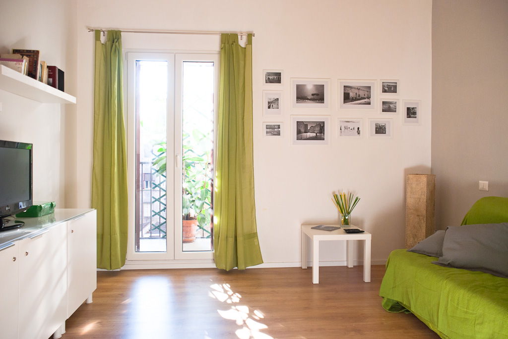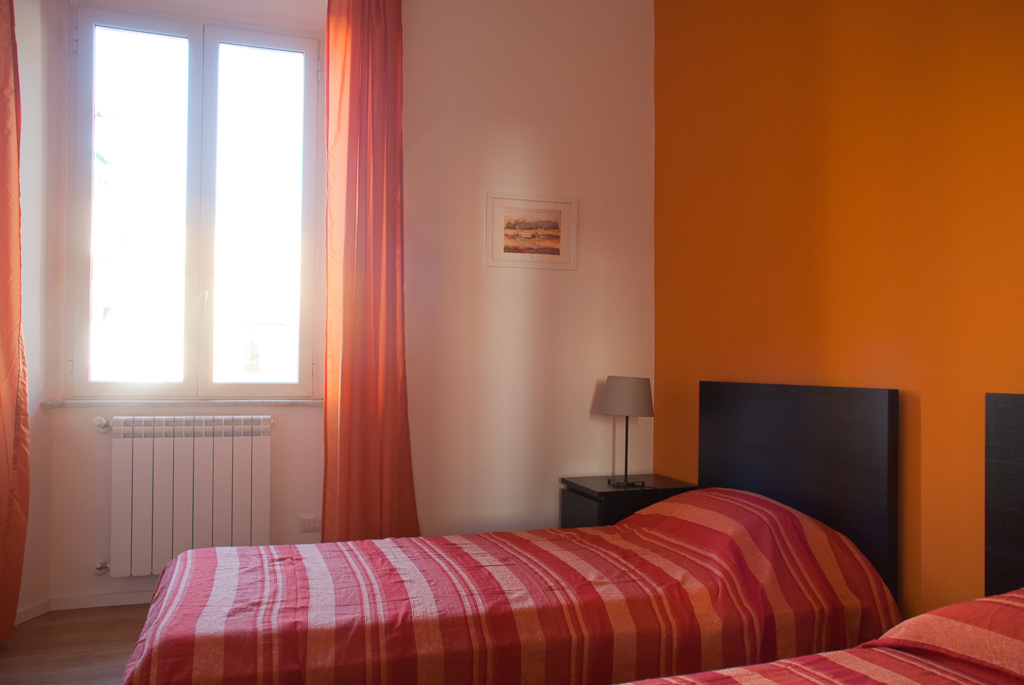 L’appartamento, situato al terzo piano di un palazzo d’epoca, è di circa 70 mq e può ospitare comodamente fino a 6 persone. E’ composto da due camere da letto (una matrimoniale e una doppia), un soggiorno con divano letto, una cucina ben attrezzata ed abitabile, doppi servizi. E’ dotato di condizionatori, connessione wireless ad internet gratuita, tv, impianto stereo, lettore DVD, lavatrice.